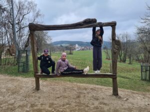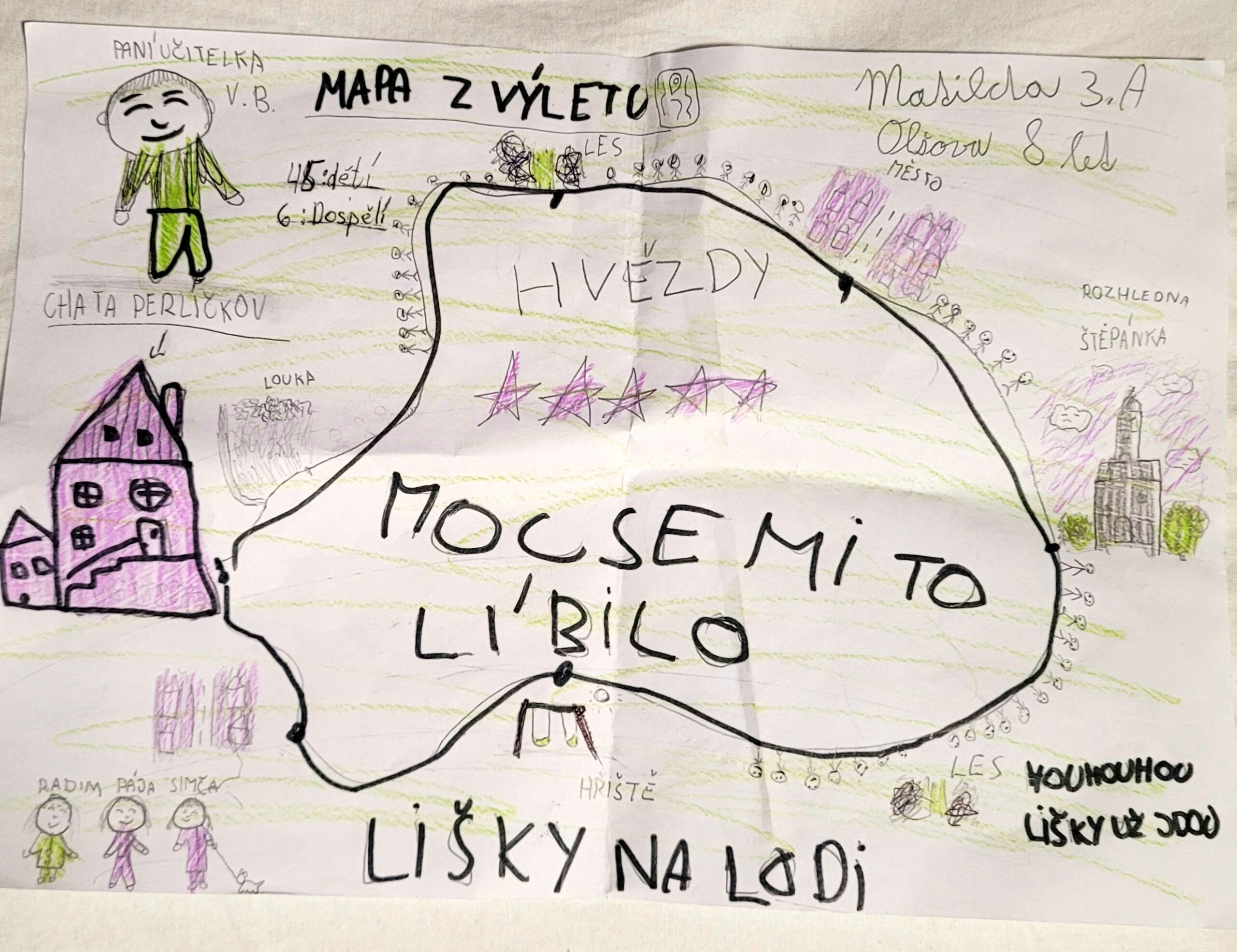 Dnes jsme prožili spoustu dobrodružství na výletě. Vylezli jsme na rozhlednu Štěpánka, pohráli jsme si v lesoparku Příchovice.