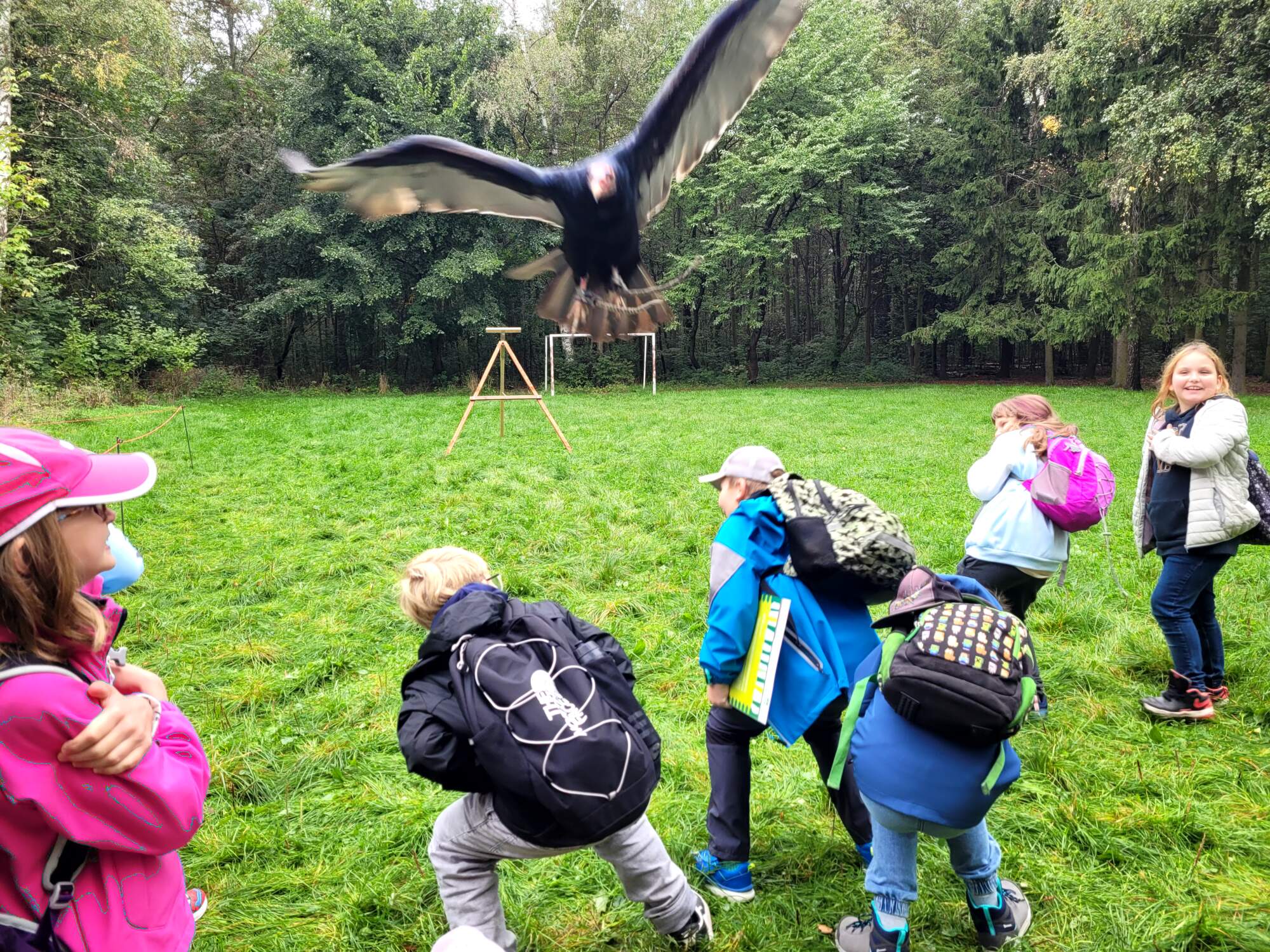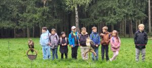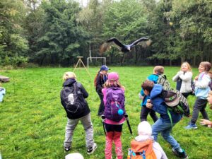 Další zastávkou byli dravci. Žáci se zaposlouchali do zajímavého vyprávění o jejich životě a měli možnost zažít jedinečný okamžik, kdy jim jeden z dravců přelétl těsně nad hlavami. Někoho se dokonce dotkl křídlem nebo nohou – to byl opravdu vzrušující zážitek!