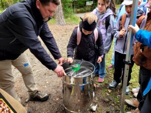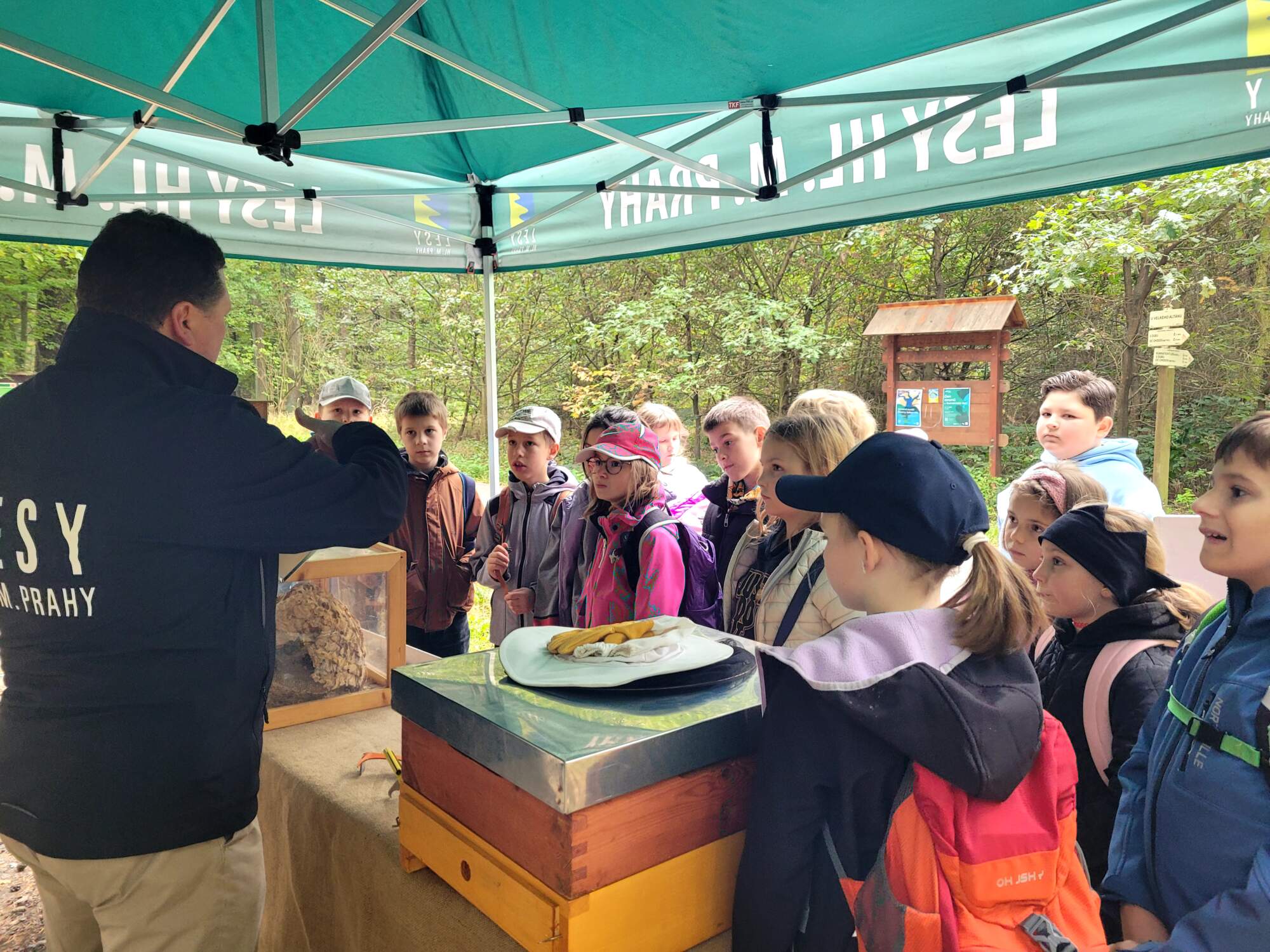 Naši žáci zde čekal bohatý program s lektory, kteří je provedli tajemstvím přírody. Nejprve se setkali s včelaři – dozvěděli se, jak o včely pečovat, mohli nahlédnout do přenosného úlu a sledovat jejich usilovnou práci. Dokonce si vyzkoušeli, jak se stáčí med.