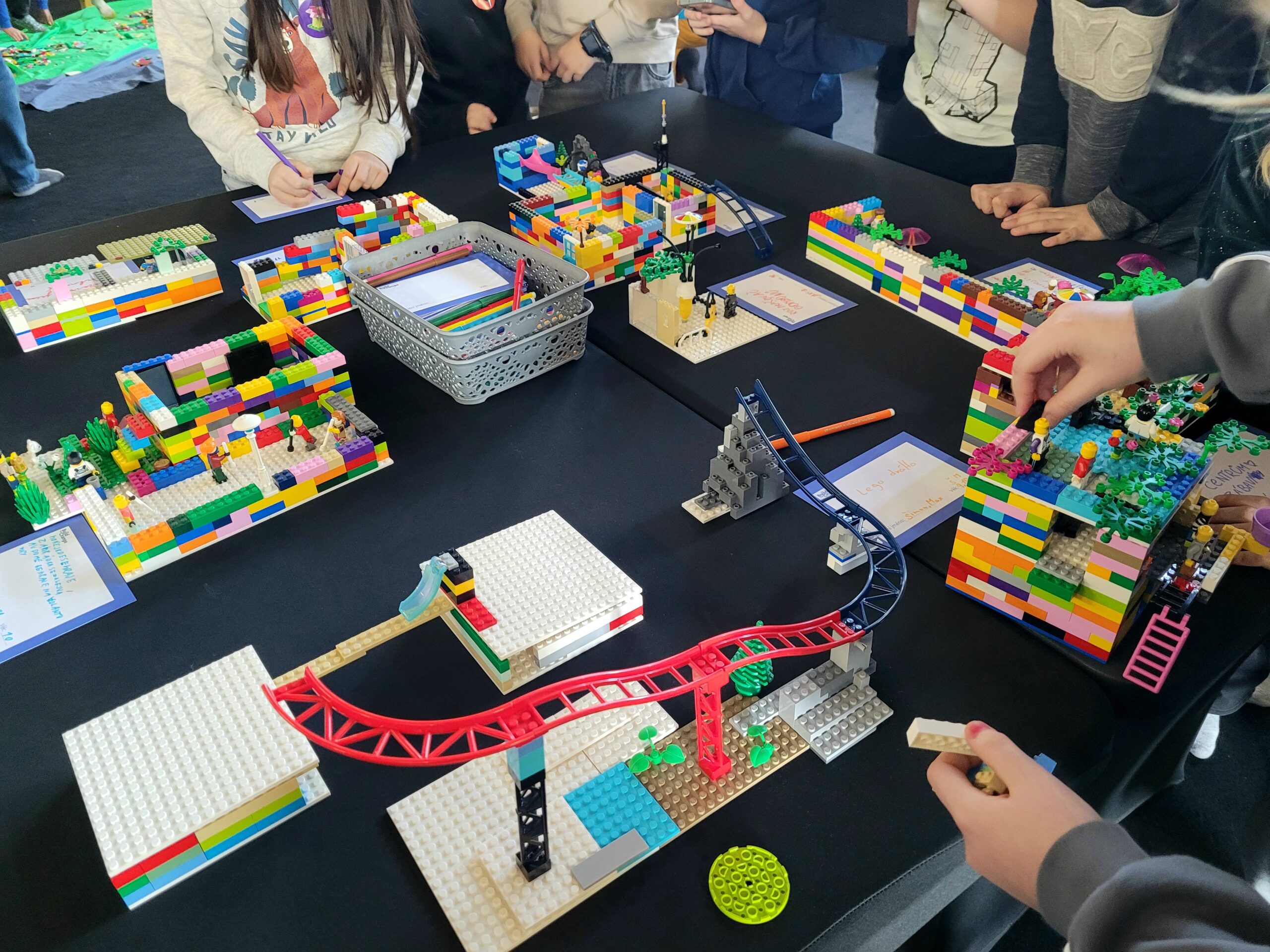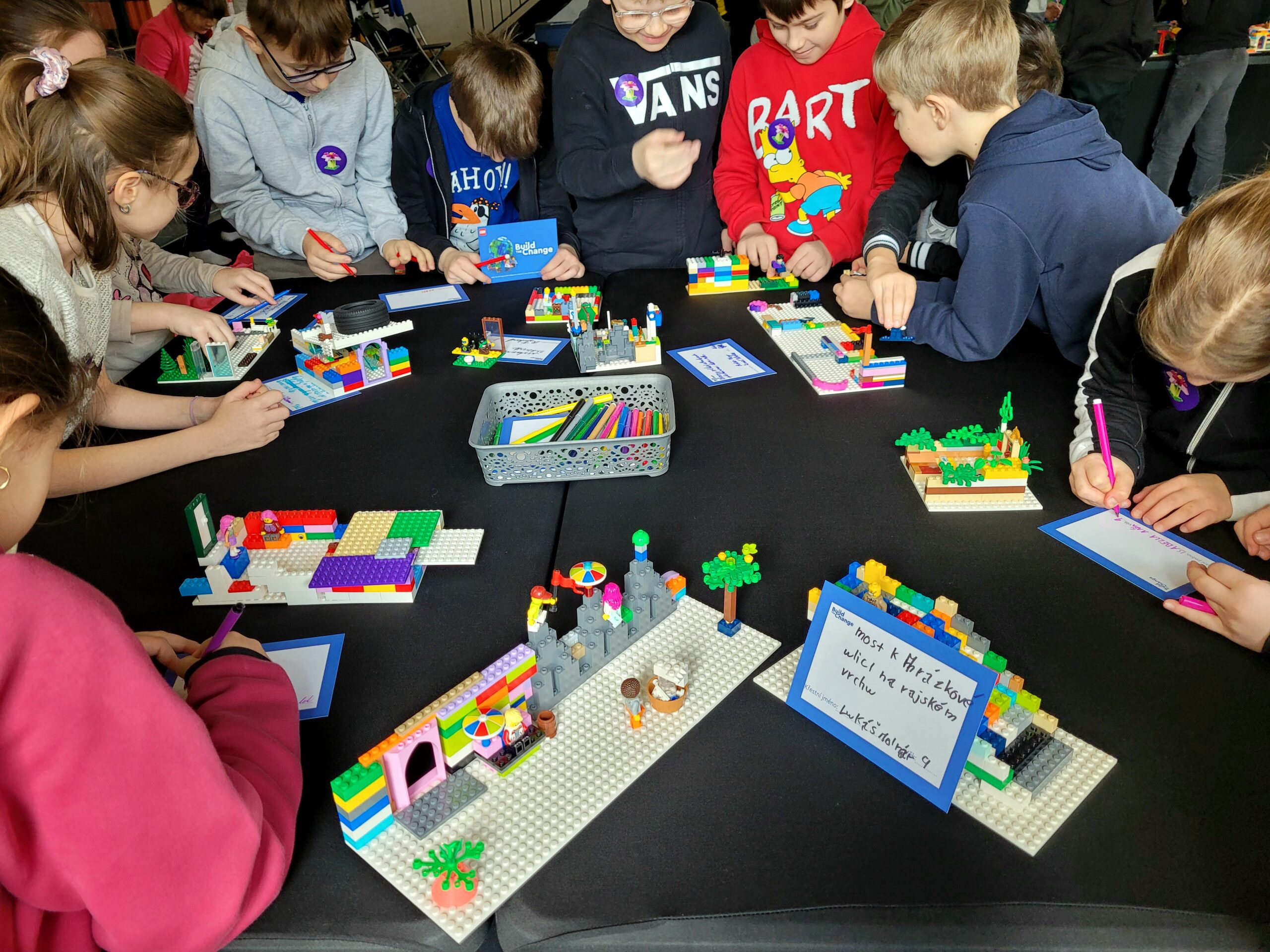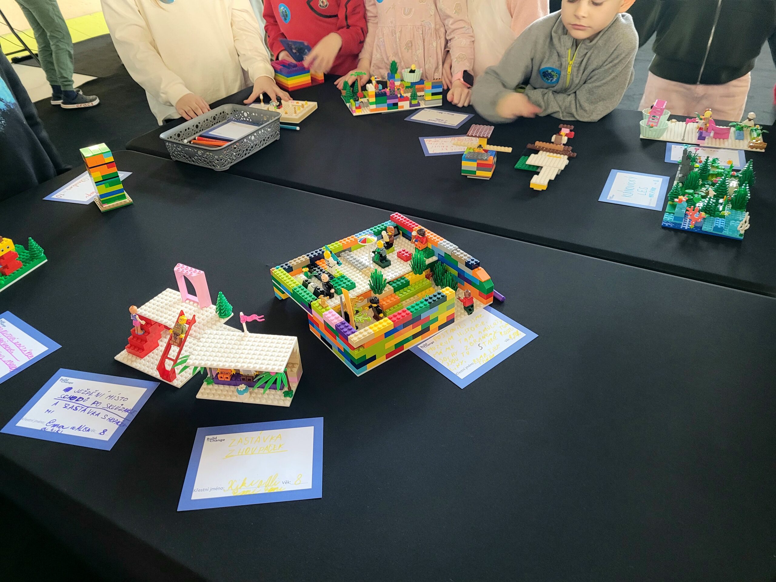 Poté přišla nejzábavnější část programu – děti začaly navrhovat a stavět své vlastní město z LEGO kostek. Každý mohl zapojit fantazii a vytvořit originální budovy, parky nebo hravé ulice. Vznikla tak pestrá a nápaditá města plná barev a zajímavých nápadů. Na konci si společně popovídali o tom, co kdo postavil a k čemu bude objekt sloužit.